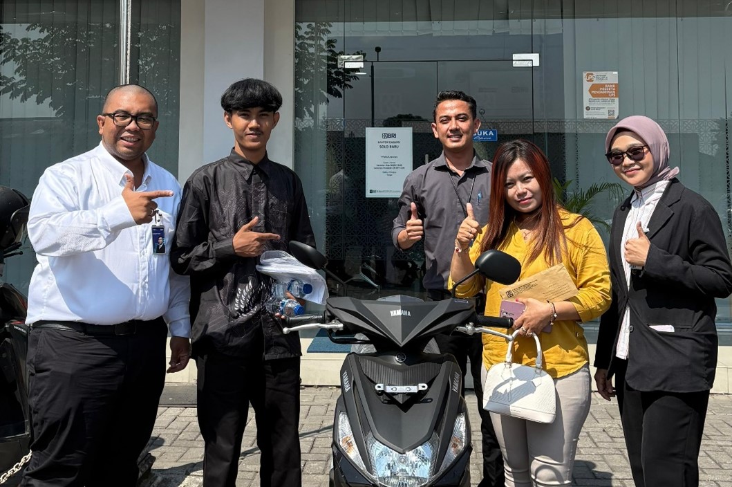 JAKARTA, REPORTER.ID – Kantor BRI Cabang Solo Baru bagi-bagi hadiah kepada nasabah lewat penarikan undian Panen Hadiah Simpedes di Jalan Raya Solo Baru Blok CA Nomor 49-51, Desa Langenharjo, Kota Surakarta, kemarin. Salah satu hadiah yang dibagikan diantaranya satu unit sepeda motor Yamaha Mio M3, pemenangnya Tegar Dewantara.