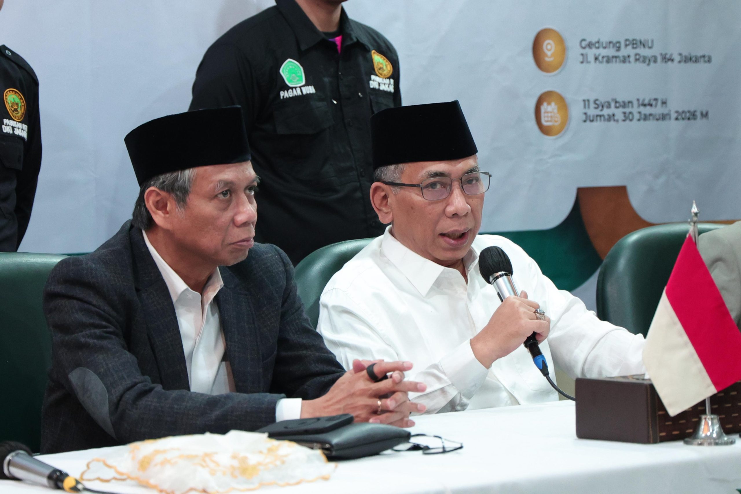 “Pada kesempatan itu Rais Syuriyah Muhammad Nuh menyerukan kepada semuanya untuk bisa hadir berpartisipasi di dalam puncak resepsi peringatan harlah 100 tahun Nahdlatul Ulama menurut kalender Masehi ini, yaitu Sabtu besok jam 9:00 Wib,” tegas Gus Yahya di Gedung PBNU, Jl. Kramat Raya 164, Jakarta, Jumat (30/1/2026).